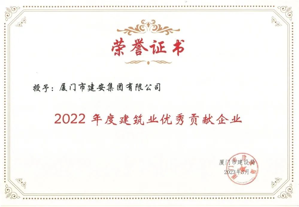 會上對2022年度全市表現(xiàn)突出的建筑業(yè)企業(yè)進(jìn)行通報(bào)表彰,廈門建安集團(tuán)獲評“廈門市2022年度建筑業(yè)優(yōu)秀貢獻(xiàn)企業(yè)”。獲此殊榮,是公司整體實(shí)力的彰顯,是建筑業(yè)主管部門對公司的認(rèn)同與肯定。