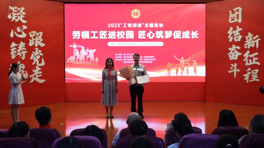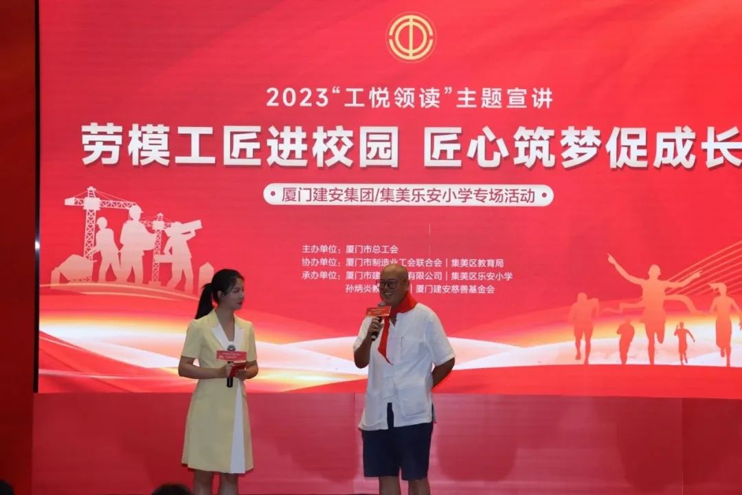 9月8日下午,2023“工悅領(lǐng)讀”主題宣講廈門建安集團(tuán)和集美區(qū)樂安小學(xué)專場活動走進(jìn)嘉庚故里。本次活動由廈門市總工會主辦,廈門市制造業(yè)工會聯(lián)合會、集美區(qū)教育局協(xié)辦,廈門市建安集團(tuán)有限公司、集美區(qū)樂安小學(xué)、孫炳炎教育基金管理小組、廈門建安慈善基金會共同承辦。