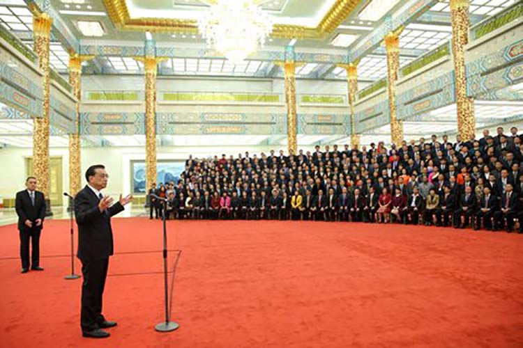 人民大會堂金色大廳歷來是黨和國家領(lǐng)導(dǎo)人舉行重大活動、會見外國政要和各國大使遞交國書等的重要場所。12月5日上午,李克強(qiáng)總理在這里會見了600多名來京參加中國個(gè)體勞動者協(xié)會成立30周年系列活動的全國先進(jìn)個(gè)體工商戶代表。他們中不僅有************個(gè)取得營業(yè)執(zhí)照的個(gè)體戶,也有第一個(gè)縣級個(gè)體勞動者協(xié)會的工作人員。擔(dān)任中國個(gè)協(xié)常務(wù)理事的孫吉龍董事長就是600多名先進(jìn)代表之一。