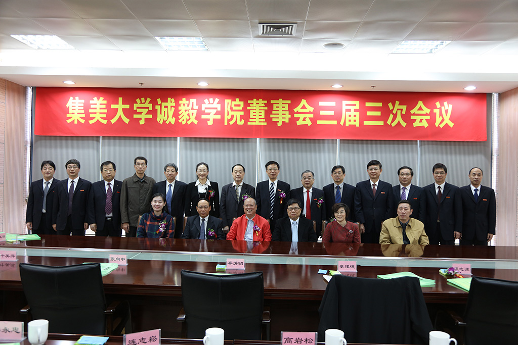 2015年12月26日上午,集美大學(xué)誠毅學(xué)院董事會三屆三次會議在景祺樓17樓會議室隆重召開。集美大學(xué)黨委書記、誠毅學(xué)院董事長辜芳昭主持會議。孫吉龍董事長以誠毅學(xué)院董事、副監(jiān)事長的身份參加會議,與其他董事會、監(jiān)事會成員共商學(xué)院發(fā)展大計。
