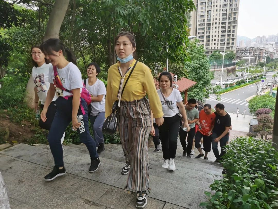 一路上,大家走走停停,拍拍照,歇歇腳,聽風(fēng)說故事,賞花弄舞姿;穿梭于山林間,目之所及,城市景觀與自然景觀相交融,四周皆是美景。