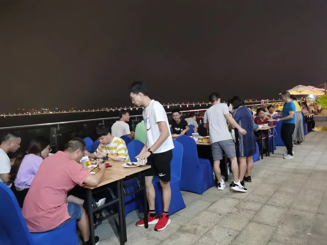完成將近十公里的腳程,到達(dá)預(yù)定的酒店,已是日暮時(shí)分,現(xiàn)場已經(jīng)準(zhǔn)備好食材,生好爐火,縷縷煙火最是能撫慰疲倦的心,饑餓的胃。坐在酒店的露臺(tái)上,遠(yuǎn)處是燈火闌珊,近處是把酒言歡。賞著景,吹著海風(fēng),烤串就啤酒,好不愜意。