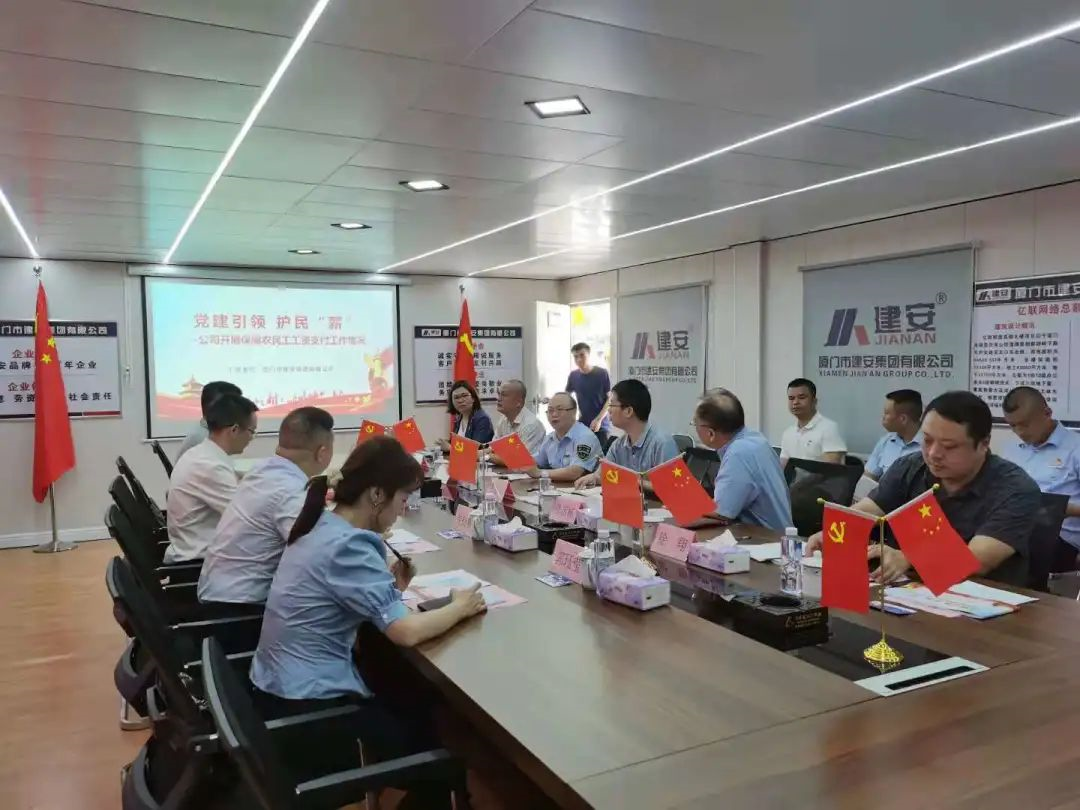 廈門(mén)建安集團(tuán)黨支部與廈門(mén)市勞動(dòng)保障監(jiān)察支隊(duì)第二黨支部結(jié)對(duì)共建,保障農(nóng)民工工資支付,并通過(guò)黨建引領(lǐng),在一線開(kāi)展黨史學(xué)習(xí)教育,學(xué)史明理、學(xué)史增信、學(xué)史崇德、學(xué)史力行,進(jìn)一步增強(qiáng)做好保障農(nóng)民工工資支付工作的思想自覺(jué)、政治自覺(jué)和行動(dòng)自覺(jué)。